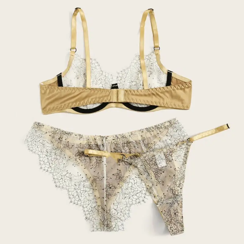 Premium Price of 3PCS Women's Lingerie Babydoll Underwear Sleepwear Nightwear Bra Set G-string Panties