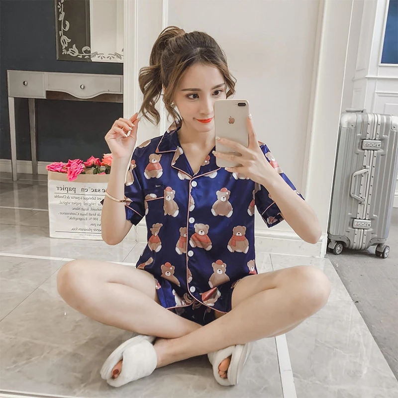 Addition Information of Satin Silk Short Sleeve Print Women's Pajama Sets Pink Women Nightie 2019 Summer Spring Woman Sleep