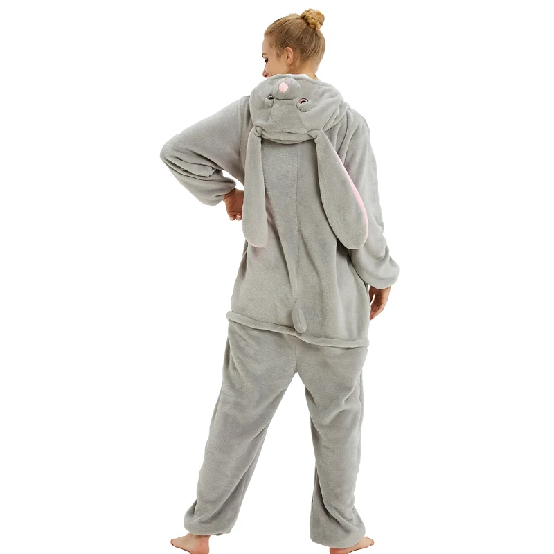 Luxury Chance for women's new animal rabbit pajamas set adult men women winter flannel hooded sleepwear soft cartoon