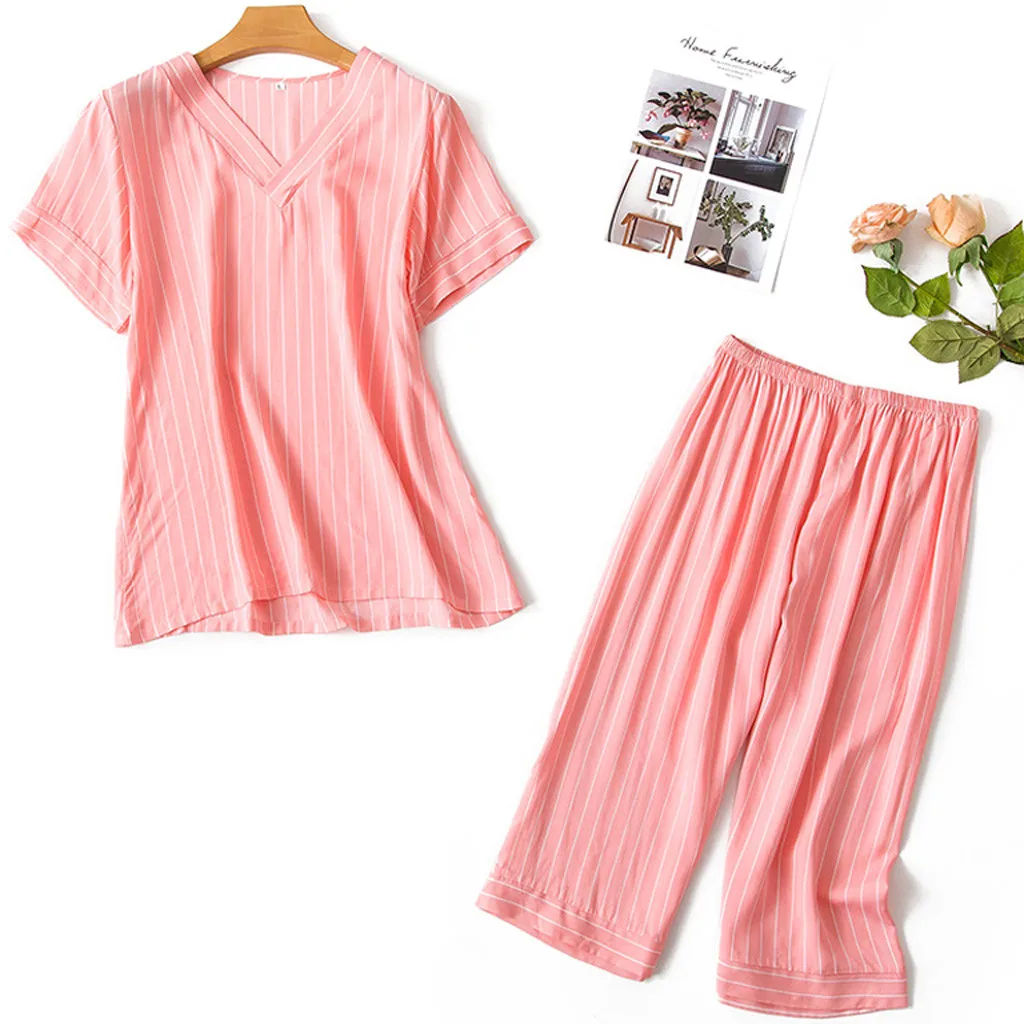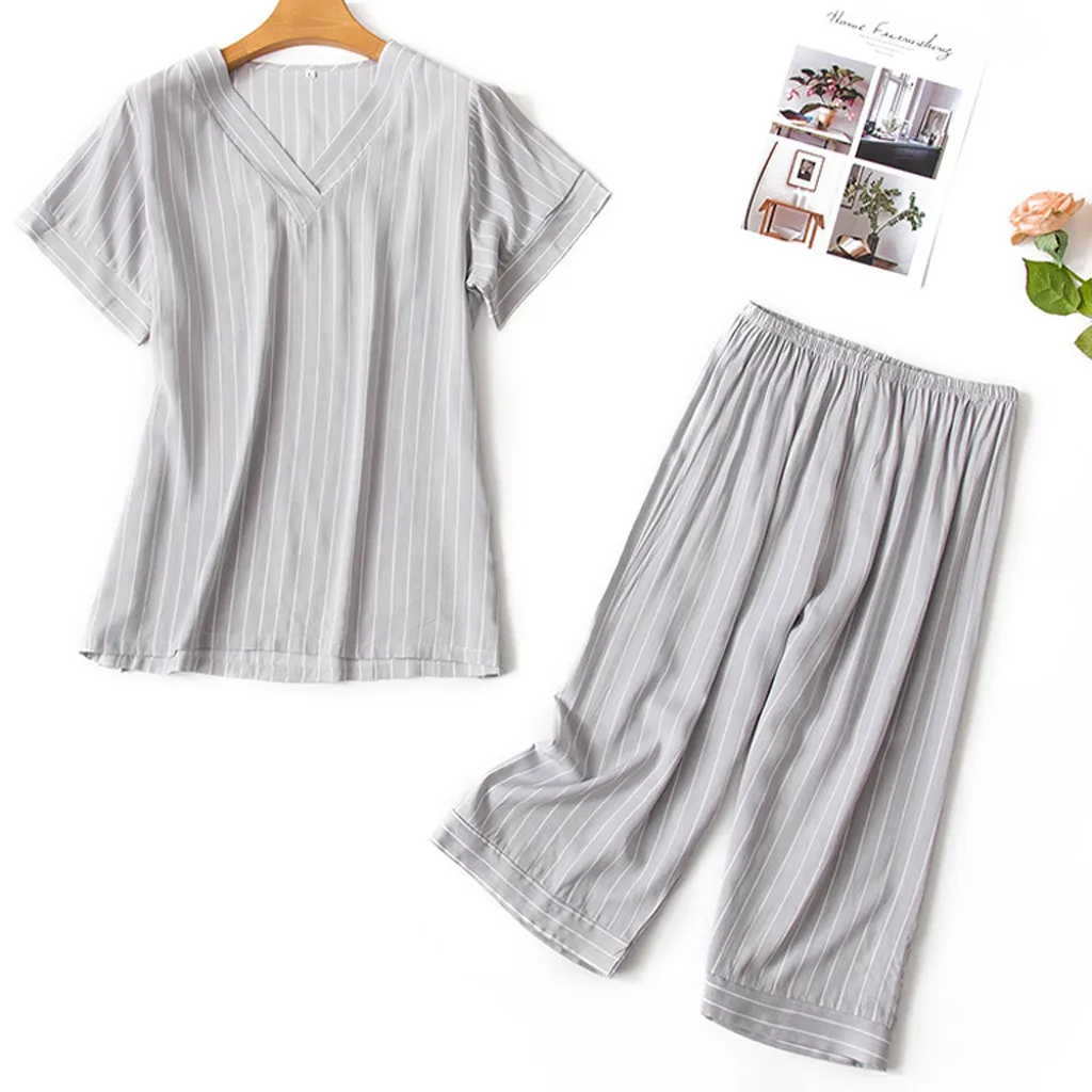 Women's Stylish Nightwear Fashion Solid Sleeve Satin Pattern Sleepwear 2PC Set Pijamas Para As Mulh