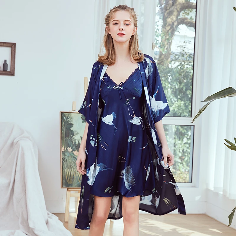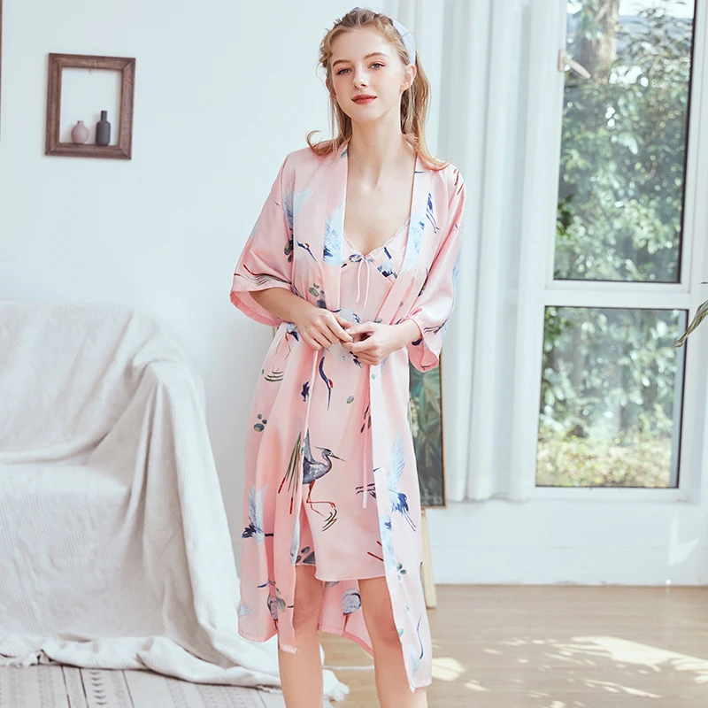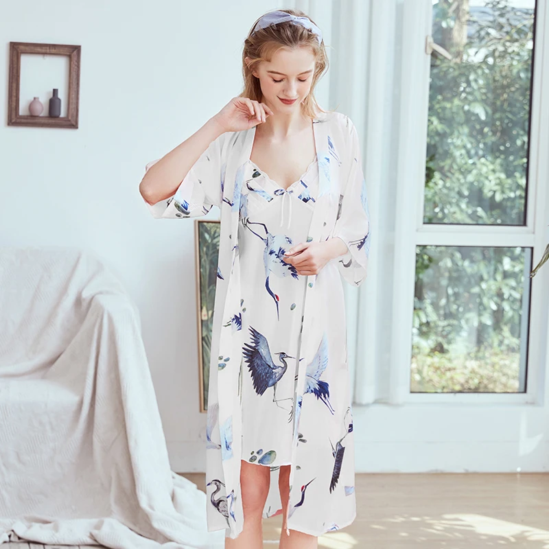 New arrival Roseheart White Women's Sleep Pajama Set Sleepwear Sexy Nightwear Bath Robes Sets Faux Silk Plus Si
