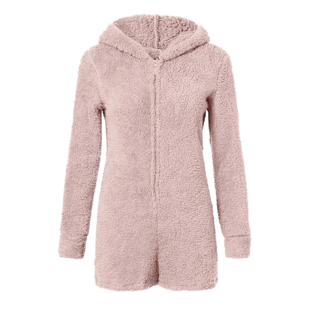 Rompers Womens Jumpsuit 2019 Autumn Winter Women Warm Coral Fleece Velvet Playsuit Kawaii Cute Bear Hooded Jumpsuit Home Clothes
