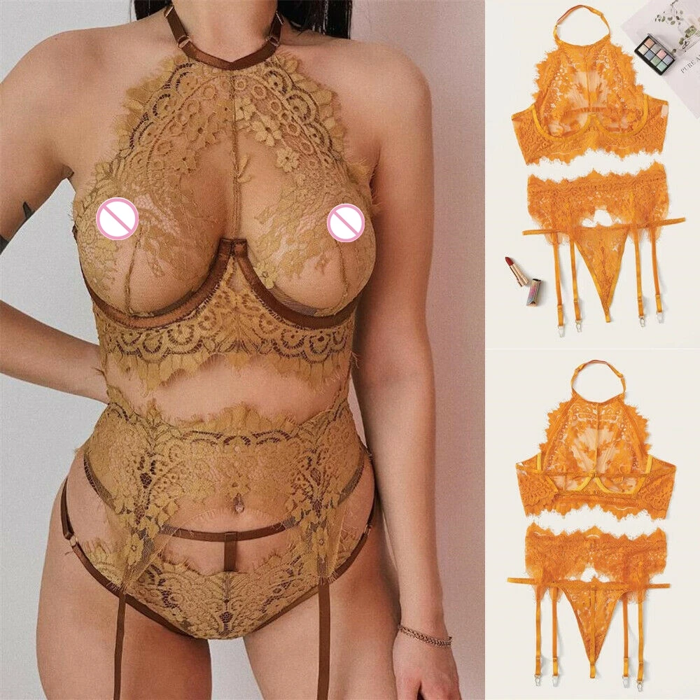Good Offer of 2019 Newest Hot Sexy Lingerie Women's Bodydoll Lace Nightwear Sleepwear Underwear Halter Bra G-stri