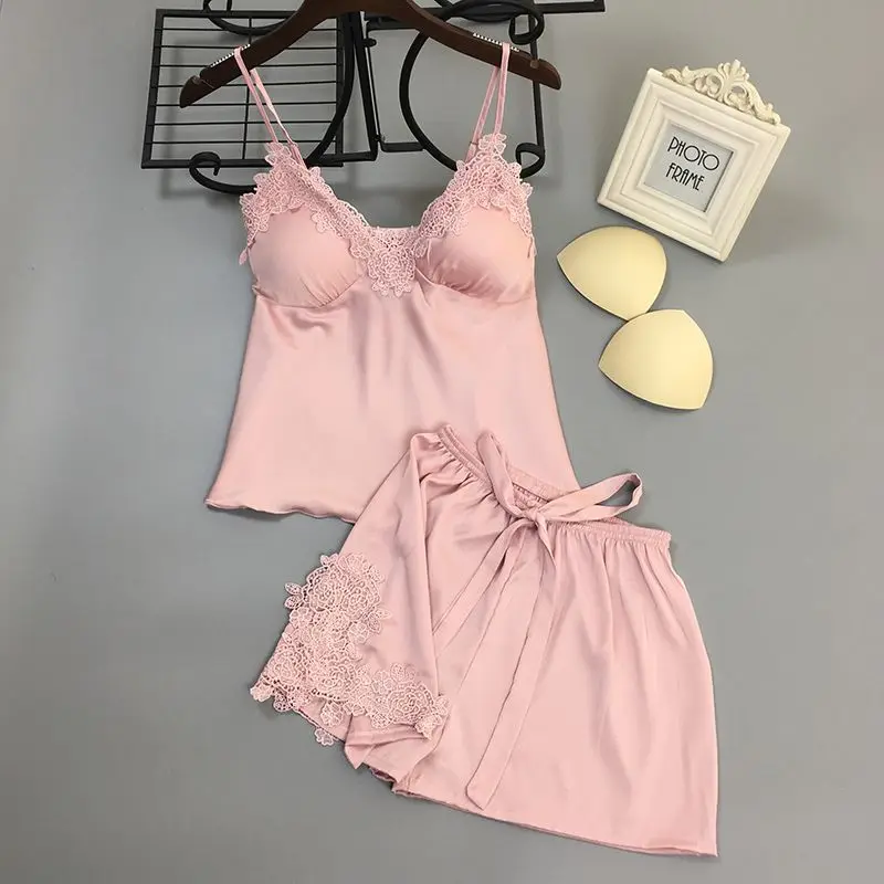 Fiklyc brand free size women's sexy lace & satin pajamas sets fashion 2019 new design summer nightwear pijamas pyjamas sets HOT