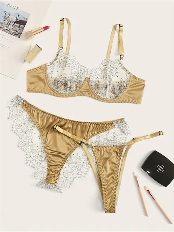 Premium Price of Women's Lingerie Babydoll Underwear Sleepwear Nightwear See Through Lace Patchwork Bra Set G-string